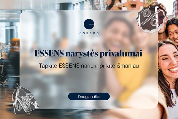ESSENS yra kokybės ir naujovių sinonimas. Atraskite prabangius kvepalus su itin kvapniomis esencijomis, natūralią kosmetiką, kuri lepins jūsų odą, maisto papildus sveikatai ir energijai, buities produktus, kurie palengvins jūsų kasdienybę. Prisijunkite prie mūsų ir pasiūlykite savo klientams tai, kas geriausia!