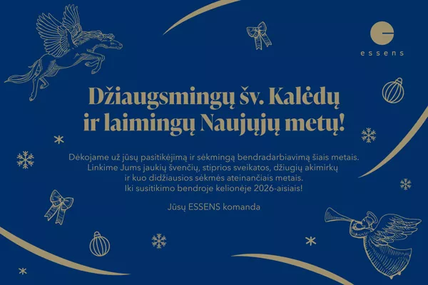 ESSENS suteikia finansinės laisvės, asmeninio tobulėjimo ir neriboto augimo galimybes. Su mumis galite kurti savo verslą naudodami aukščiausios kokybės produktus ir patikrintą verslo modelį, leidžiantį augti be apribojimų. Organizuojame įkvepiančius KickOFF renginius, edukacinius seminarus visoje Europoje, o sėkmingiausiems siūlome prabangias, pilnai apmokamas atostogas Turkijoje.