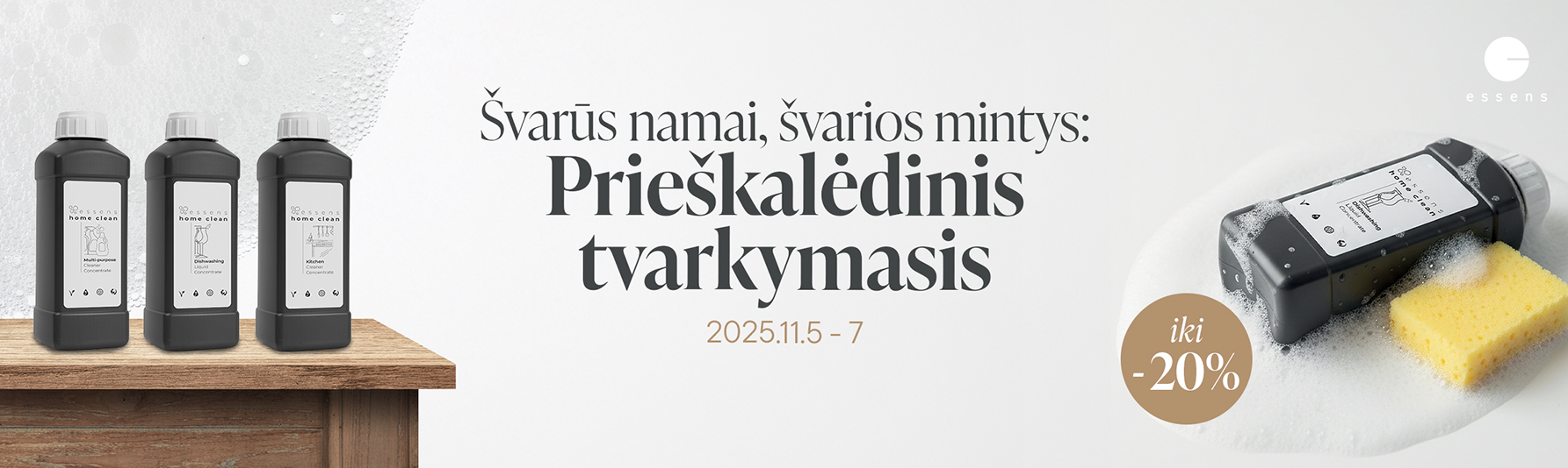 Šiais metais palengvinkite namų tvarkymą ir pasirūpinkite juo iš anksto su ESSENS Home Clean produktais, kurie garantuoja tobulą rezultatą be jokio vargo ar rūpesčių!