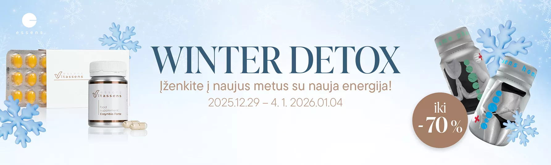 Mūsų pasiūlymas, galiojantis nuo 2025 m. gruodžio 29 d. iki 2026 m. sausio 4 d., suteiks jums kruopščiai atrinktų produktų su nuolaidomis iki 70 %. Tai puikūs palydovai sveikesnei rutinai po įtempto šventinio laikotarpio.